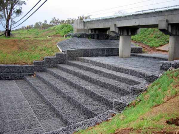 雷諾護(hù)墊是指由機(jī)編雙絞合六邊形金屬網(wǎng)面構(gòu)成的厚度遠(yuǎn)小于長度和寬度的墊形工程構(gòu)件,其中裝入塊石等填充料后連接成一體,成為主要用于水利堤防、岸坡、海曼等的防沖刷結(jié)構(gòu),具有柔性、對地基適應(yīng)性的優(yōu)點(diǎn)。