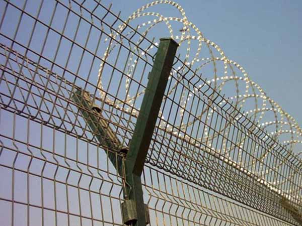 機(jī)場護(hù)欄網(wǎng)又稱作機(jī)場隔離柵“Y型防御護(hù)網(wǎng)”,是由V型支架立柱,加強(qiáng)型焊接片網(wǎng),防盜連接件和熱鍍鋅刀片刺網(wǎng)組成強(qiáng)度和防御性很高。近年來,被廣泛應(yīng)用在機(jī)場,軍事基地等高場所。